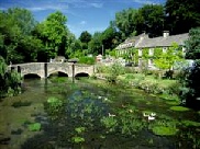 The Swan Hotel provides a fitting backdrop to this enchanting scene. The village includes a trout farm, visitor centre and Arlington Row , the most photographed cottages in England. My picture concentrates on the undulating roof line.